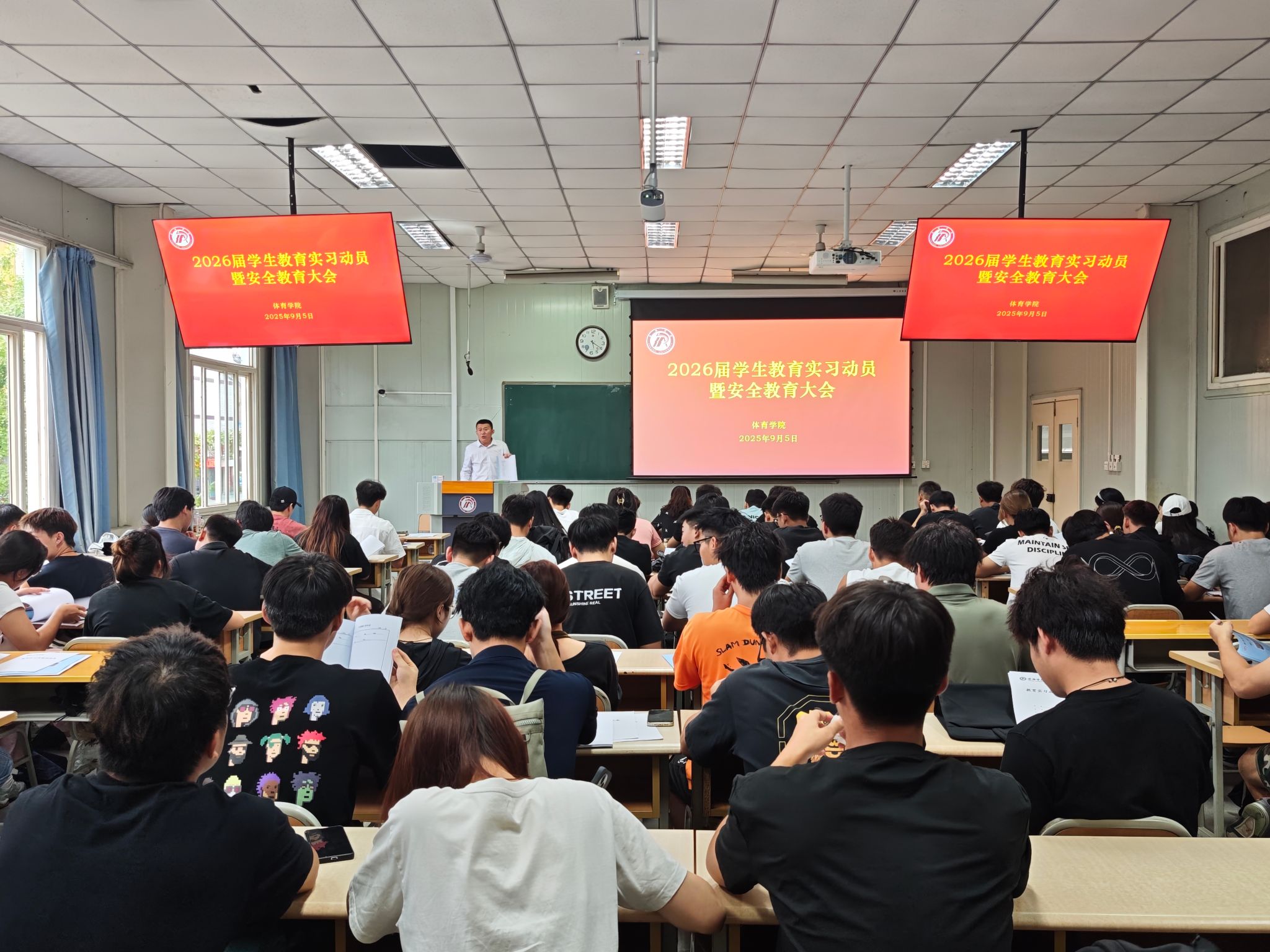 为进一步做好我院26届毕业生实习工作,9月5日下午,我院在10号教学楼召开实习动员暨安全教育大会。学院领导班子成员、系主任、教研室主任、学工办主任、2026届全体毕业生参加了会议,会议由教学副院长郭西魁主持。