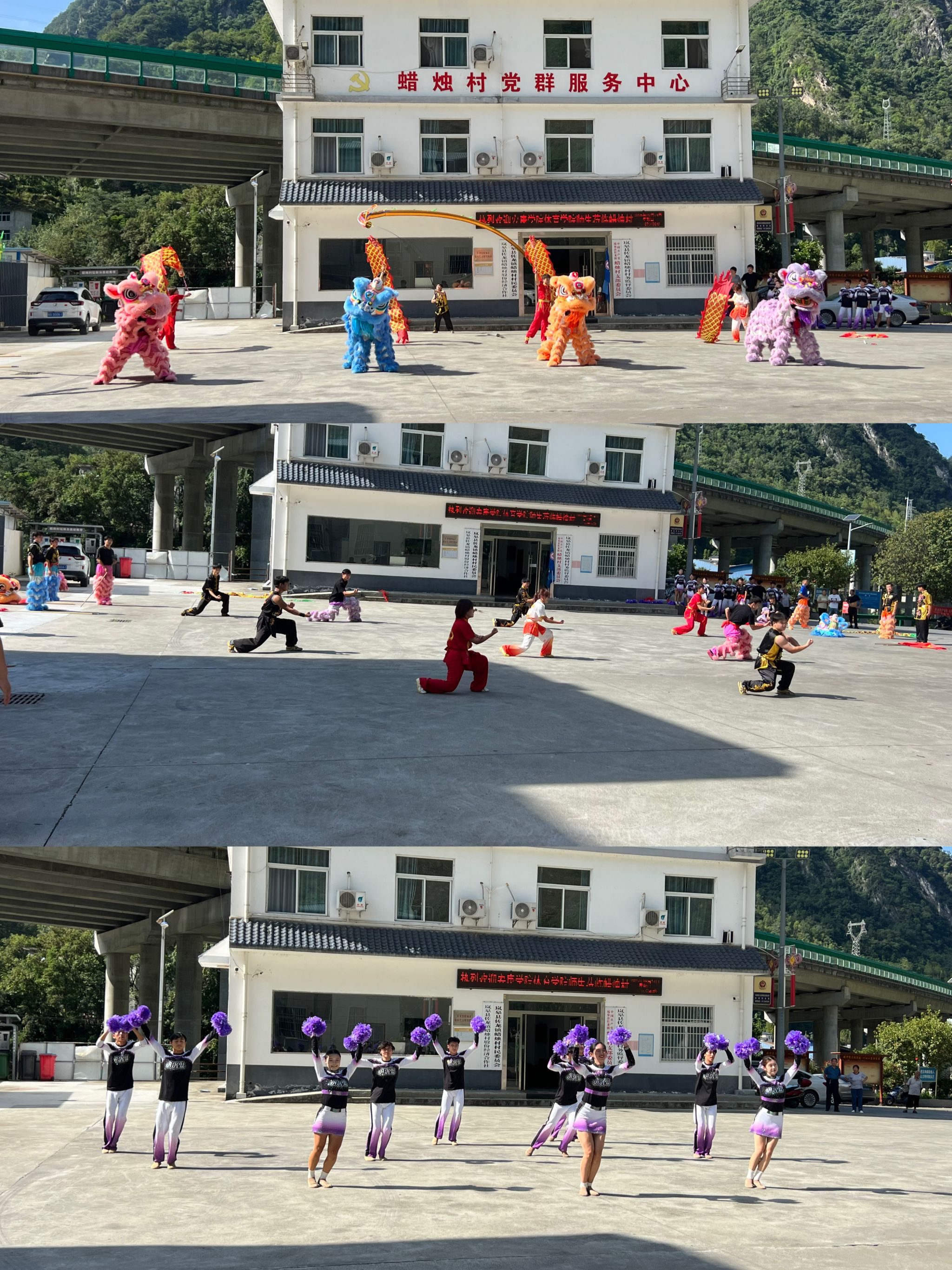 为深入学习贯彻党的二十大精神,引导青年学生在社会实践中“受教育、长才干、作贡献”,9月14日,威廉希尔体育组织武术队和啦啦操对赴岚皋县蜡烛村和“村BA”主会场开展了“送文化下乡”展演活动,威廉希尔体育党总支书记韩晔、院长吕仙利一行带领全体参演队员50余人参加活动。