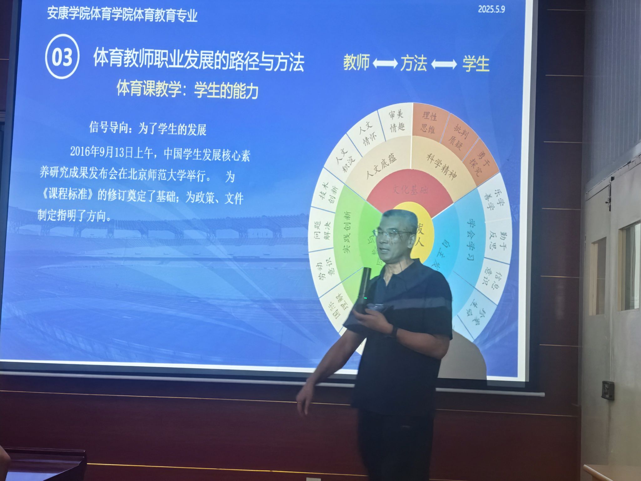 2025年5月8日,我院特邀体育教育领域专家、安徽省颍上一中特级教师杜泉老师开展题为“新时代体育教师发展的路径与方法”的专题讲座。本次讲座旨在探索新时代背景下体育教师的专业成长方向,提升体育教育质量。