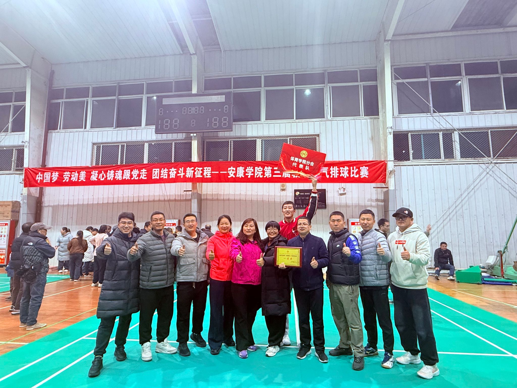 12月2日晚,由校工会主办,威廉希尔体育与工会文体委员会联合承办的“中国梦、劳动美、凝心铸魂跟党走、团结奋斗新征程”williamhill官网第三届教职工气排球比赛,在江南校区体育馆圆满结束。经过多轮激烈角逐,威廉希尔体育分会凭借出色的整体发挥和团队协作,最终夺得本届比赛一等奖。